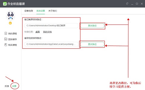 相对性于学习app,很有可能大伙儿更在意的是电脑上的文档储存途径在哪儿,点一下左下方的“设定”,在【系统配置】这一栏中各自相匹配着:手记手机截图储存途径、缓存视频储存途径,为找寻便捷你能自定储存途径。