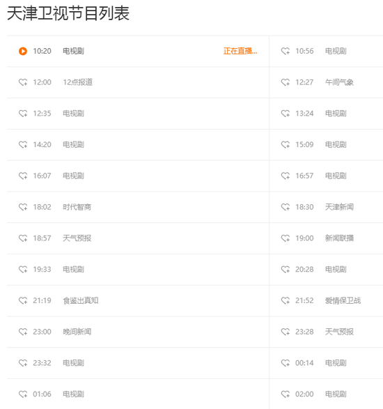 天津电视台节目表: