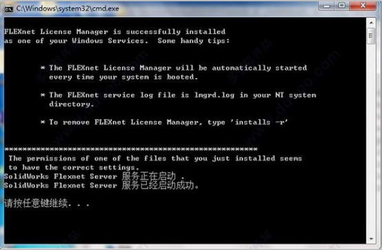 以管理员身份运作“SolidWorks_Flexnet_Server\server_install.bat”并直到新服务项目,将安裝并运行“SolidWorksFlexnetServer”。
