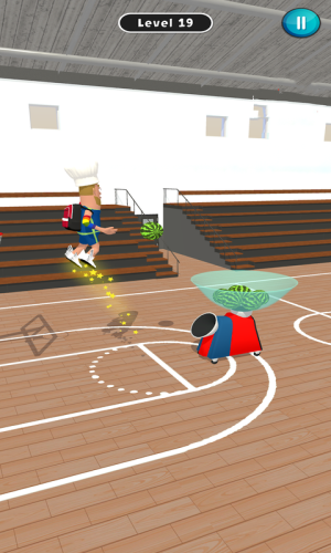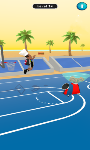 2.拖动角色起飞,对准篮筐,把篮球扔进篮筐,得到相应的分数。
