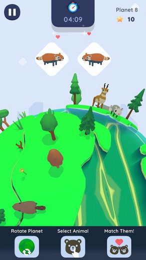 空闲动物星球是一款可爱的分位游戏。在游戏中,你可以帮助动物在那里建造行星,将相同的动物配对在一起,并获得大量的爱。玩家需要让这个星球更加充满活力,不断收集金币。清新唯美的画风让玩家有最舒服的尝试。