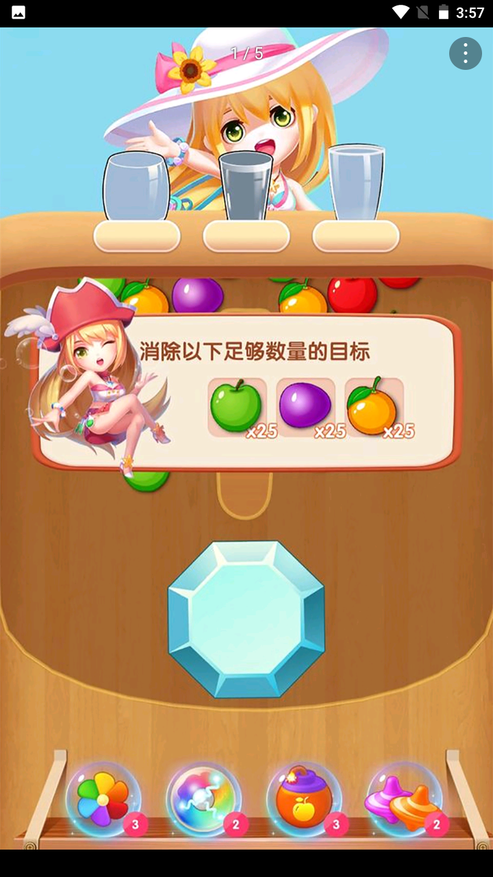 3、将水果消除成果汁,经典的消除游戏,中间会有障碍,减压又好玩。