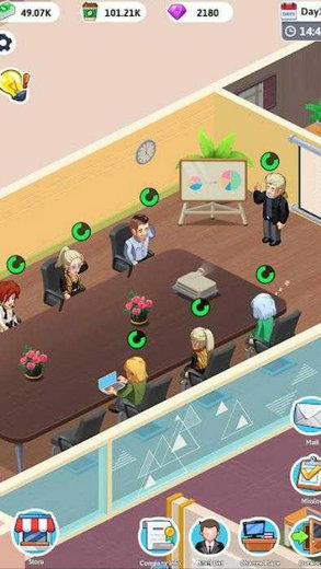 在空闲办公室大亨你可以成为一个公司真正的CEO:扩大办公室,提高员工效率,投资设施,增加公司福利,甚至面试不同的员工来决定是否雇佣他们……每一个选择都会对你的公司产生影响。明智地投资你的闲钱。