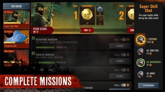 1.挑战其他玩家或者独自完成丧尸猎杀任务。这是你的选择。狙击手。