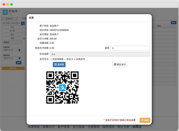 更为普遍的现金结算和VIP卡付款这也是不可或缺的。