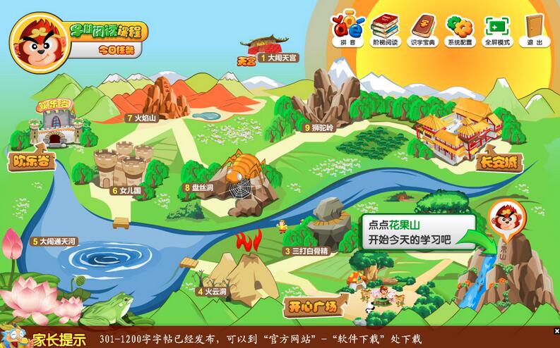 2、快乐识字悟空随同,西游戏小故事围绕学习过程