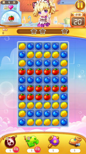 3.开心消水果随着游戏等级的上升,难度也会增加。
