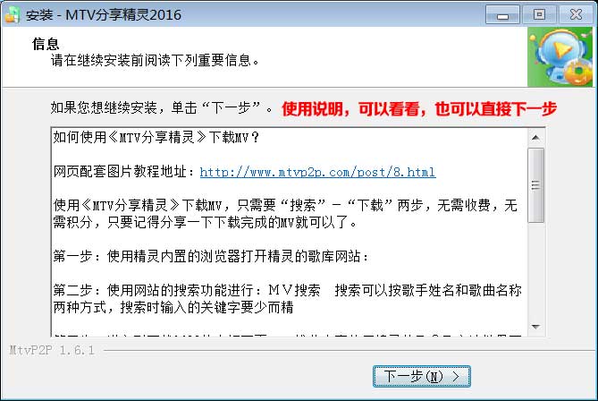 4、这儿是《MTV分享精灵》的介绍,请下一步。