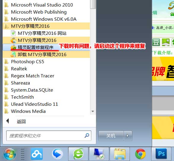 “小精灵配备恢复程序流程”是处理安裝全过程中出错,导致没法从小精灵网址上获得下载链接难题的实用工具,大伙儿还可以在刚开始--程序流程--MTV共享小精灵文件目录中起动它。