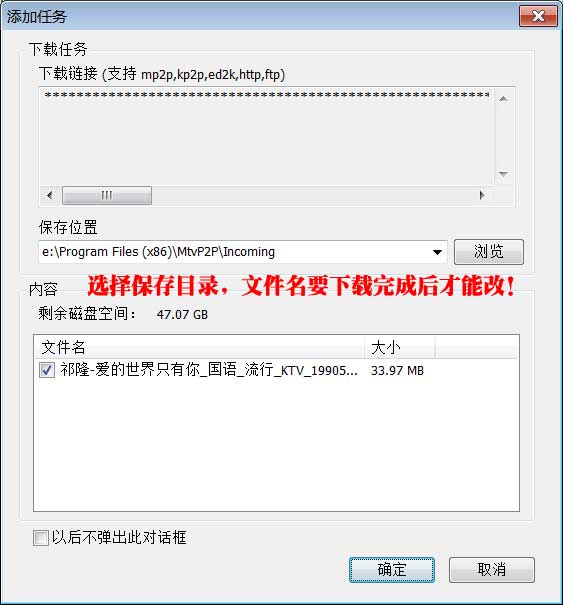 第四步:点一下“P2P髙速下载地址”以后,会弹出来下载任务对话框中