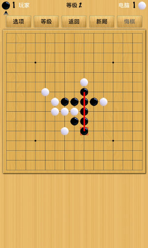 3.单人游戏模式,挑战人工智能;初级、中级和高级是可选的。