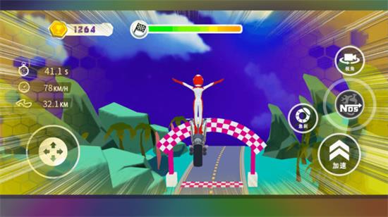 2.进行一系列精彩的比赛和比赛,避开前方的各种障碍,保持摩托车的速度。