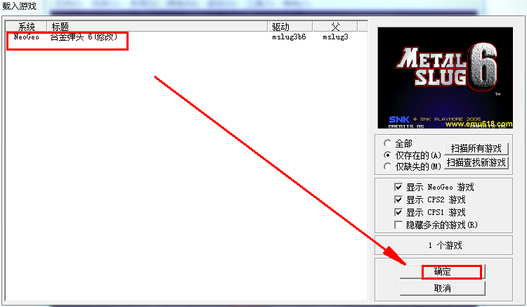 3、加载“合金弹头6”修改版,点击确定