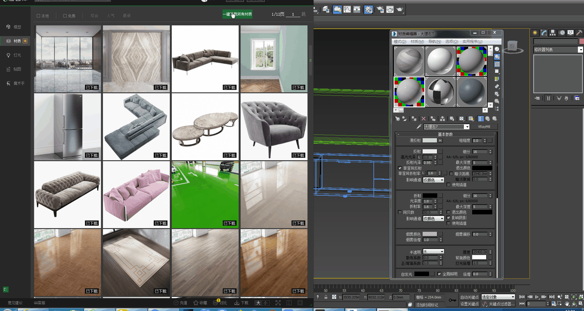 挑选材料能够以一键免费下载全部材料,十分的便捷,材料也是能够一键拖动至3dmx里边应用。 如图所示一十一。