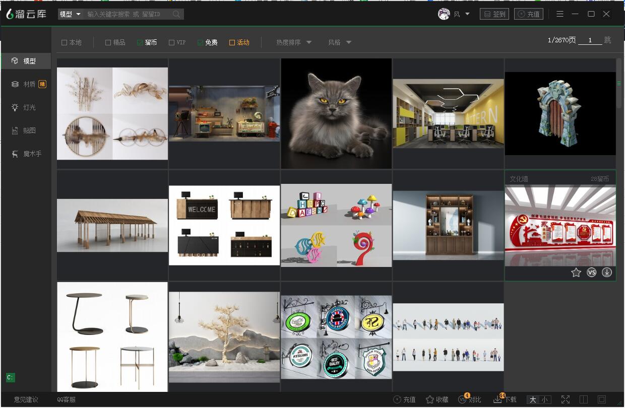 溜云库即3D溜溜网客户端,能用溜溜id登陆溜云库下载素材图片(实体模型,材料,灯光效果,脚本制作,3d贴图等),溜云库官网