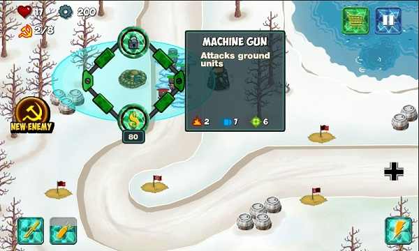 3.多种武器装备:玩家可以购买不同的武器装备,包括机枪、迫击炮、火箭筒等武器,增强士兵的攻击力和防御力。