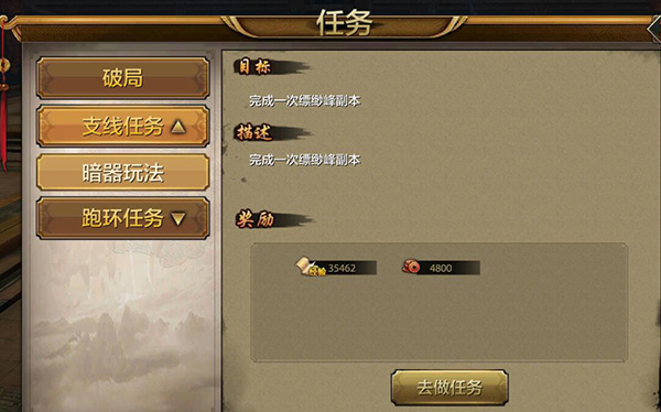 支线任务游戏中中也是初学者朋友们升級的一个很好的方式。最先支线任务接有一定的必要条件,便是游戏玩家角色的级别做到对外开放一些游戏的玩法的情况下,能够提取,例如灵兽的繁育,洗练等游戏玩法,义结金兰,英雄人物欧,袖箭这些,在游戏玩家级别对外开放了新的游戏玩法系统软件以后,都能够接有关的支线任务,这种每日任务能够为初学者朋友们,解读和课堂教学新对外开放的系统软件游戏玩法。一半都是会奖赏很多的经验和铜钱。除此之外,每一个游戏玩法的有关支线任务还会继续奖赏有关系统软件的宝贵游戏道具。例如灵兽游戏玩法的支线任务,会奖赏灵兽小宠物,提悟丹,洗炼药。袖箭游戏玩法的支线任务,会奖赏袖箭的修练石这些。奖赏的游戏道具在游戏里面全是十分宝贵的。也有许多 ,例如晶石和加强符这些。又有游戏道具拿,也有巨奖的经验和铜钱。因此 支线任务是最遭受众多游戏玩家朋友们热烈欢迎的角色,在能够接新的支线任务的情况下,能够首先选择进行支线任务。
