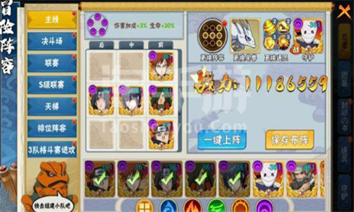 3.招募忍者——玩家可以通过消耗游戏资源来招募忍者,为自己的队伍招募更多的忍者。搭配