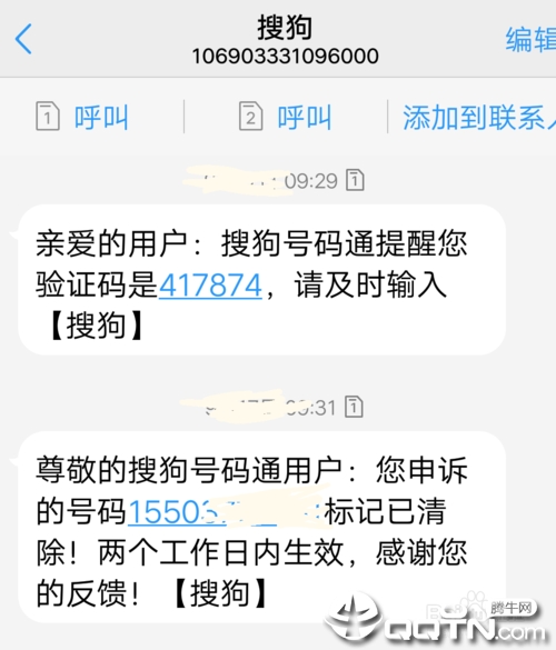 然后便会接到搜狗搜索发的短信通知。一般迅速便会撤消标识了。