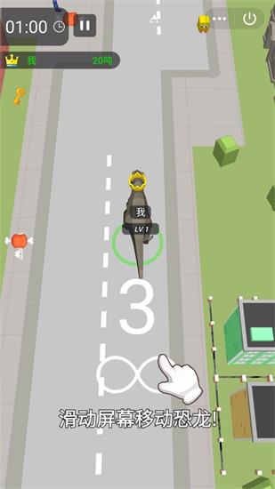 2.进入游戏后,只需用手指滑动屏幕,控制恐龙的移动方向即可摧毁更多建筑物,获得高分