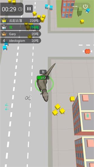 2.控制你的恐龙与其他人战斗,城市中的所有物品都可以被摧毁,不用担心