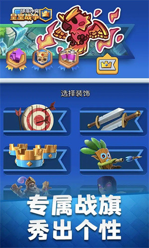 4、收集皇室战争家族成员和您熟悉的《部落冲突》军队,法术和防御建筑等卡牌,打造和升级您的卡组;