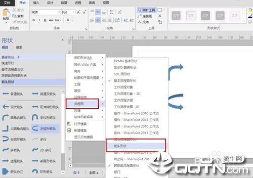 也有一种方式是在Visio中有免费模板出示箭头图, 具体地址见图例, 立即选定必须的箭头符号拖拽到制图地区就可以.