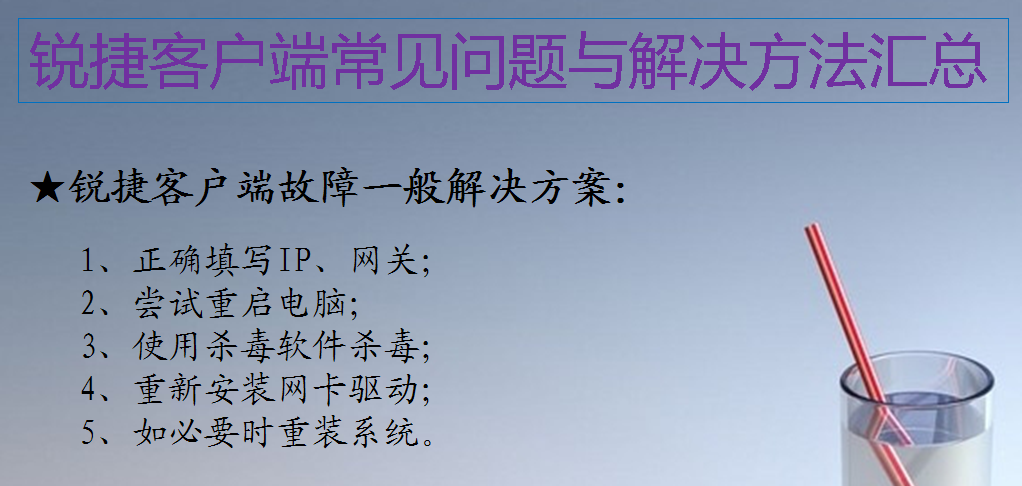 打开后能够掌握到锐捷客户端常见故障的一般解决方法,以下截屏所显示。