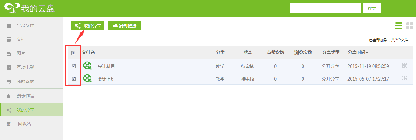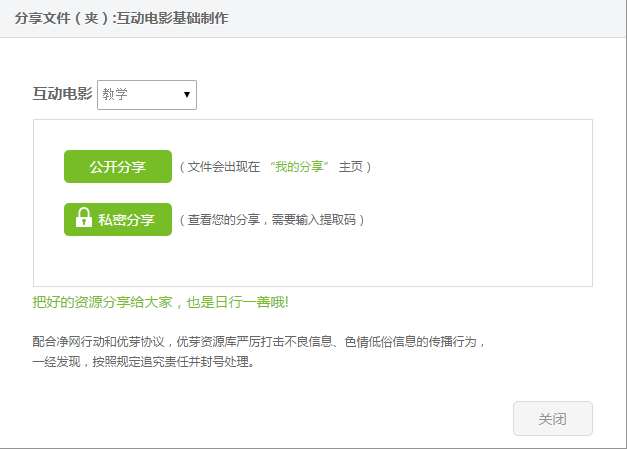 ②挑选互动电影共享品类,点一下公布或私秘共享。