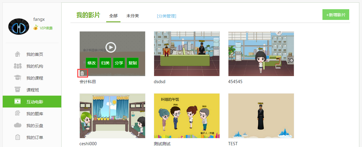 ③启用要撤消共享的互动电影,点击“撤消共享”就可以。
