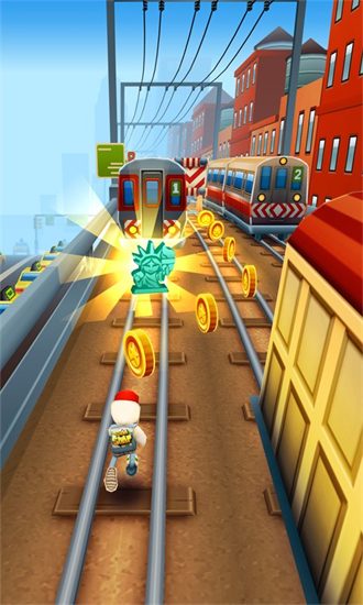 在地铁跑酷纽约版这个版本中,玩家可以操纵独特的当地专属角色开始冒险。每个版本的地铁跑酷都有自己的专属角色,因此玩家可以拨打地铁跑酷纽约版与纽约特定角色一起玩。这次玩家来到了纽约这座不夜城。让你在跑酷的过程中有更好的冒险,其中包含很多纽约市的元素。全新的游戏内容给你带来不一样的乐趣。这里的天际线非常好,玩家可以感受到更加刺激的跑酷。