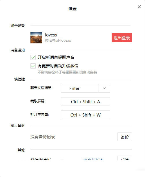 2、UI设计比较简单,左边栏出示了闲聊、通讯录二项,左下方为设定,作用需要比电脑版网页稍微丰富多彩,例如能够备份数据微信聊天记录。