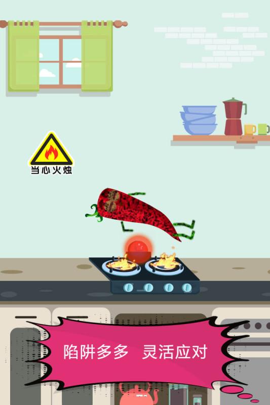 3.锻炼你的反应能力和手速,合理操作辣椒,避开障碍物,尽快通过关卡。