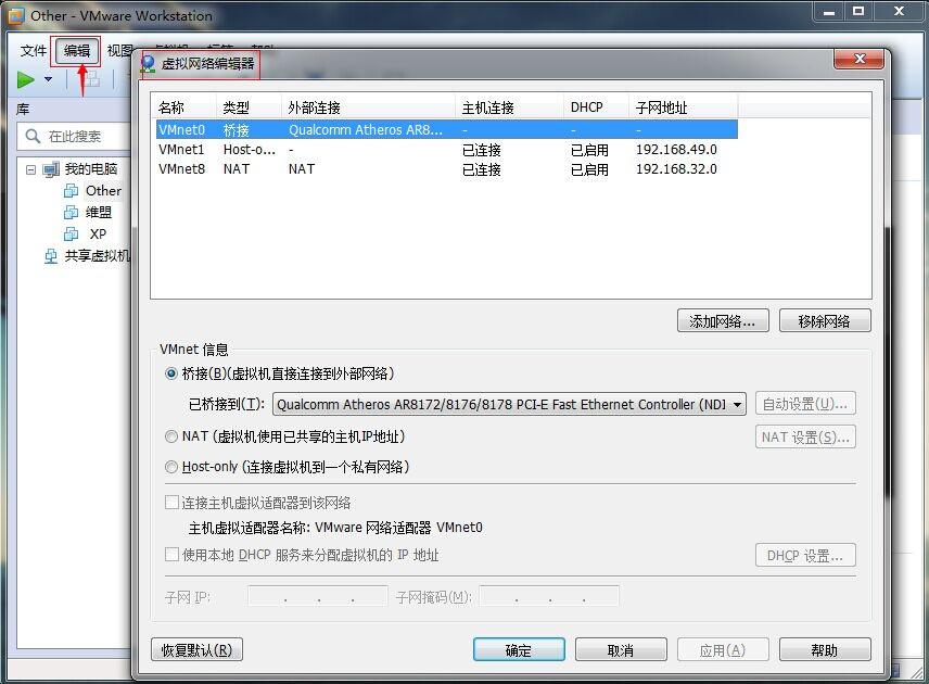 别的的二块虚拟网卡各自挑选你桥接的网口。)