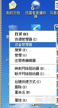 一、在桌面上“我的电脑”上鼠标右键挑选“设备管理器”