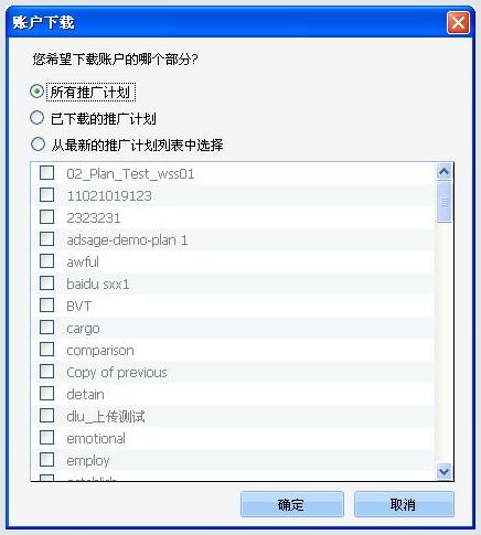 当点一下【免费下载账户信息】后,您能够在弹出来的提示框中挑选免费下载【全部推广方案】或【已下载的推广方案】。【已下载的推广方案】就是指您当地早已免费下载过的推广方案开展数据信息的同歩,而增加的推广方案不容易被免费下载。如下图所示: