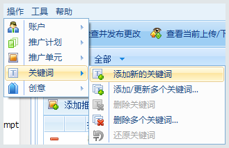 关键字的实际操作通道分成两一部分:莱单实际操作,如下图所示: