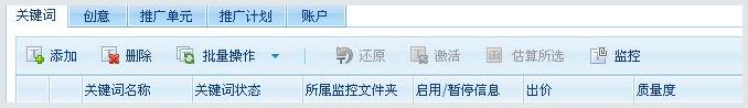 根据莱单和便捷实际操作区,我们可以对【关键字页签】中的【关键字目录】开展加上、删掉、批量操作、复原、激话、估计选定和监管关键字等实际操作。
