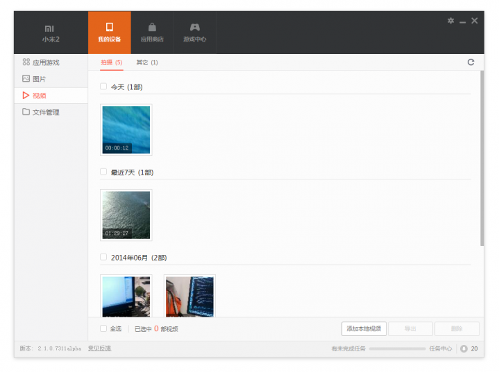 ▼运用手机游戏管理页面,删改、导出来、查询应用详情,照片管理页面 and 视頻管理页面