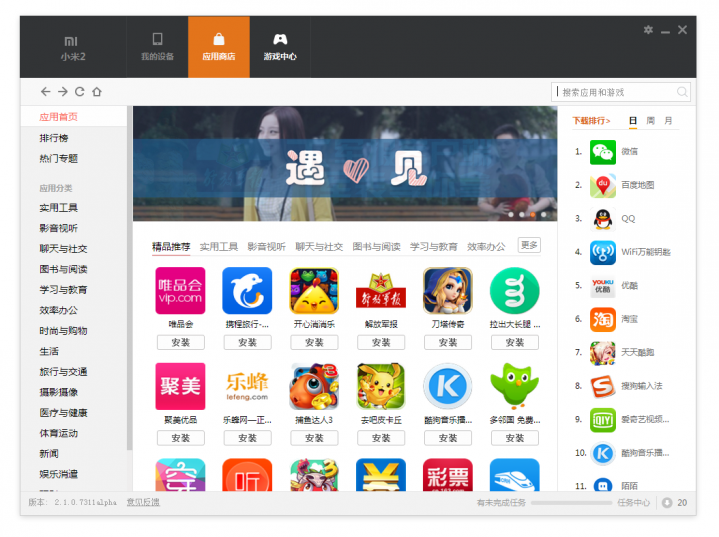 小米助手2.0 Beta版的精准定位和以前彻底不一样。以前版本号的小助手是一个PC端的实用工具,仅为小米用户的备份数据、复原、升級、一键刷机作用要求服务项目。全新升级重做、全新升级重新构建的小米助手,在管理方法作用上更为全方位,更担负起PC端开放平台的功能。此次首测的是beta版,以后的快速迭代会绵绵不绝,新的作用与提升会持续与客户们碰面,诸位针对小米助手的提议、要求、拍砖、调侃都通通快来