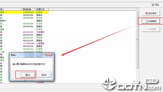 7、库存量调整进行,点一下【备货退换】开展发放,依据弹出来弹出框,确定实际操作,如图所示: