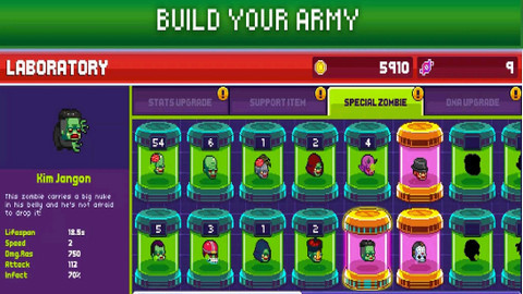 3.僵尸变异:探索并创造数十种不同的僵尸,并通过拼接它们的DNA来解锁新的变异能力。