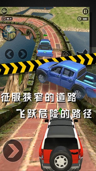 2.灵活应对,克服各种困难,顺利到达终点,获得更多奖励,升级你的越野车。