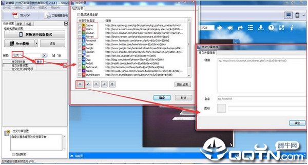 7.社交媒体共享作用能够设定中国的社交媒体共享站(如QQ空间、新浪微博等)。