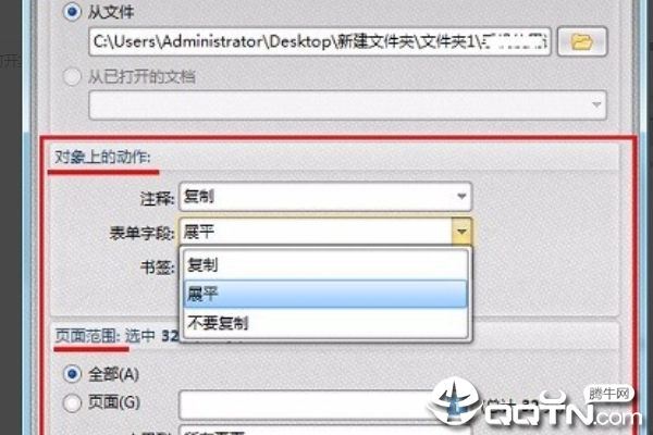 4、在目标上的姿势中能够所有选“拷贝”选择项;在网页页面范畴中挑选所需合拼的网页页面。