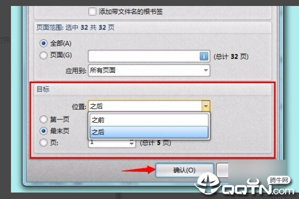 5、最终在总体目标中设定文件合并的次序,设定进行后点“确定”按键。2个pdf文件就合拼成功了。