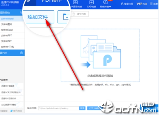 3、点一下“加上文档”按键,挑选一个必须变换word为pdf的.doc或.docx文档。或拖动文档到页面变换区。