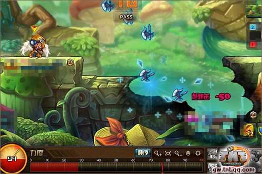 根据键盘键位“空格符”,能够操纵火炮发送的幅度。按着“空格符”的時间越长,火炮的发送幅度越大。