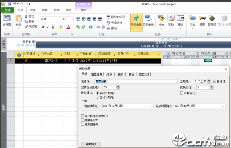 3、建立一个空缺的Microsoft Project2010新项目,键入新项目的名字,新项目刚开始的時间,进行的時间等信息内容,键入进行后点一下【明确】就可以了。