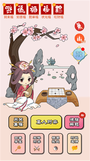 迎春五子棋最新版是一款充满中国风的五子棋手机游戏。玩家可以自由加入门派并选择真人游戏、赛季排位、积分排行等多种游戏模式,并可以随时随地在手机上快速开始游戏。 迎春五子棋最新版提供多种游戏模式。玩家可以选择真人配对游戏与朋友对战,或者挑战高难度的电脑。此外,还有赛季排位、积分排名等游戏模式,让玩家在比赛中提高棋艺和排名。